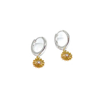 Upgrade your earring collection with our stunning Daisy charm earrings. They feature a silver, gold, or rose gold plated daisy charm on silver hoops, adding a touch of elegance to any outfit.