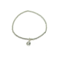 Experience some sparkle with this elegant silver plate beaded stretch bracelet featuring a gold, silver, or rose gold diamond drop charm.