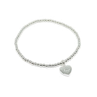 Experience some sparkle with this elegant silver plate beaded stretch bracelet featuring a gold, silver, or rose gold heart charm.