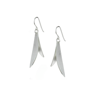 Add a touch of modern elegance to your look with a pair of these unique dangly earrings. Each earring features two gently curved silhouettes with a satin finish that catches the light beautifully.  Perfect for both everyday wear and special occasions.